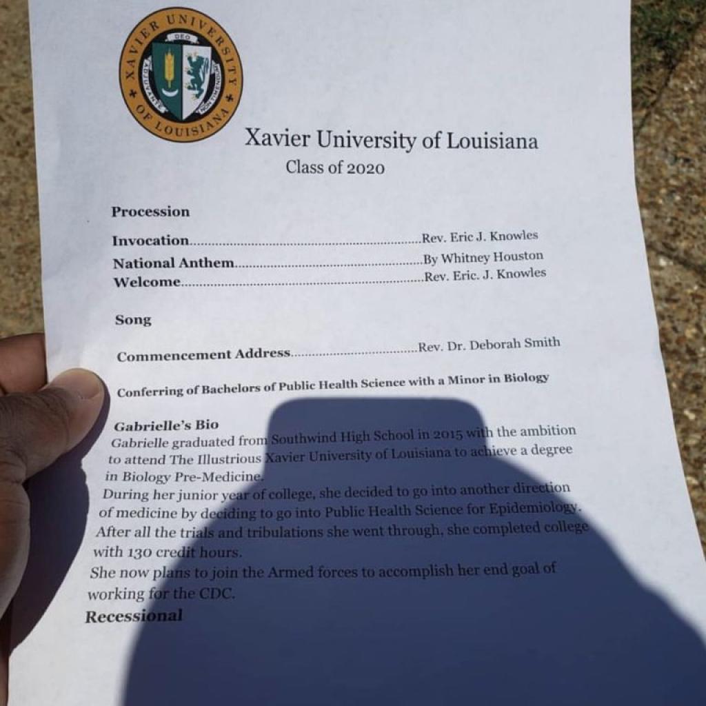 Gabrielle Pierce terminait son diplôme de l'Université Xavier en Louisiane et était bien déçue de ne pouvoir souligner l'évènement. Son père, Torrence Burson, a décidé qu'il allait faire vivre ce moment à sa fille peu importe le moyen.