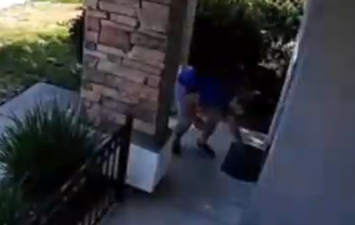 Lorsqu'il a cogné à la porte, comme personne n'est venu répondre, il a montré le portefeuille à la caméra et l'a déposé devant la porte d'entrée.