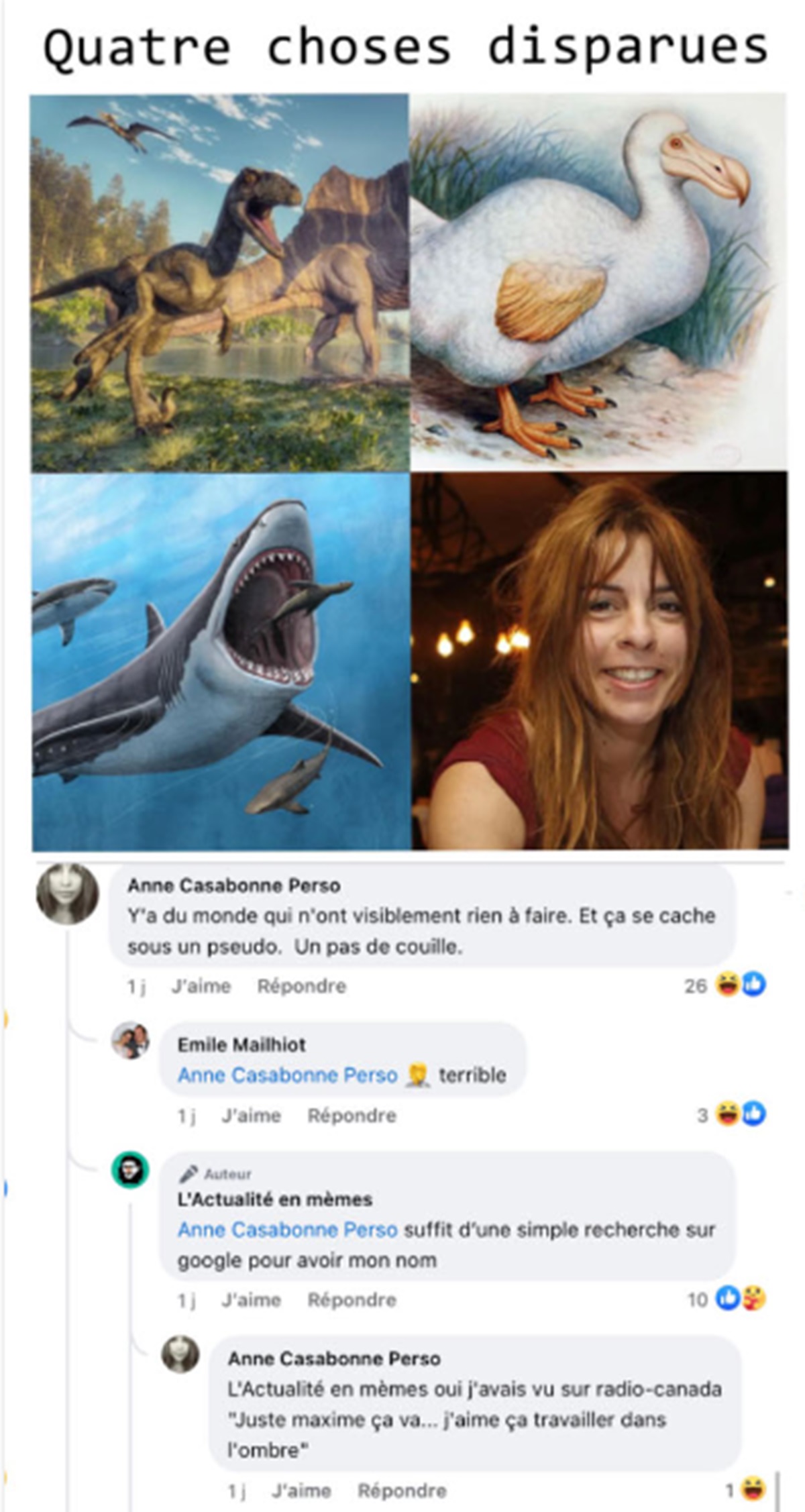 Alors qu'on ne l’a pas vue depuis un certain temps au petit écran, elle n'a pas hésité tout récemment à répliquer lorsque sa photo a été publiée sur une page Facebook qui se veut humoriste.