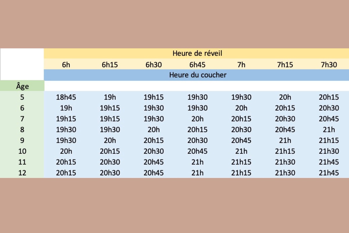 Si vous doutez de ce tableau, voici le nombre d’heures de sommeil recommandé pour les enfants selon leur âge.